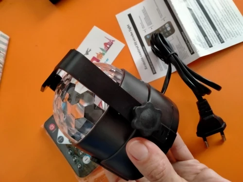 Доставка посылки за три недели. Покупка с купоном АлиЭкспресс за 471руб. Светильник компактного размера, розетка евро, на подставке. В комплекте идет пульт управления. Батарейка для пульта в комплекте не идет. Нужна круглая часовая батарейка. Много разных режимов свечения. Достаточно для большой комнаты. Вполне заменяет цветные огоньки. К покупке рекомендую