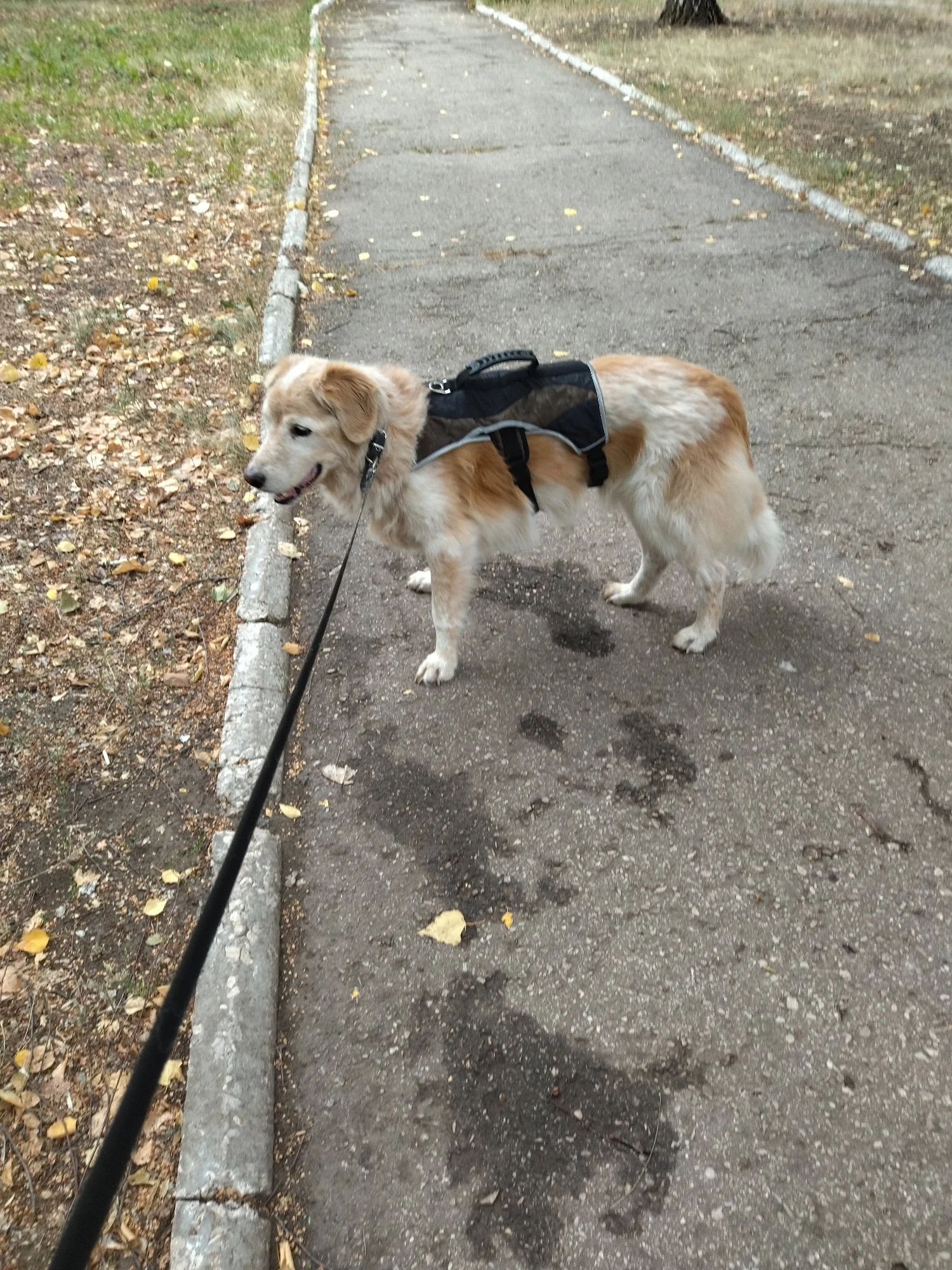 Размер xl отлично подошёл на голдена. Удобно помогать ему подниматься по лестницам.