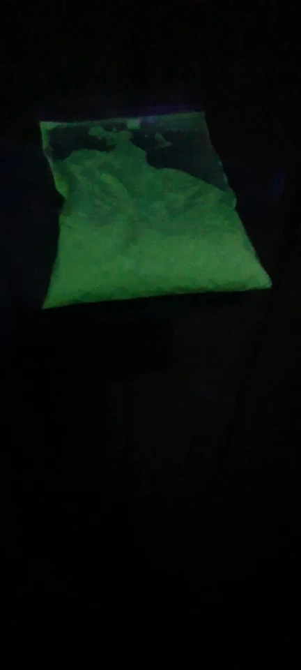Шло долго, но дошло. Видимо, таможенники неравнодушны к пакетам с белым порошком. Тем не менее, порошка много, упакован в два пакета, спрессовано плотно, в темноте светится красивым синим цветом. Спасибо!