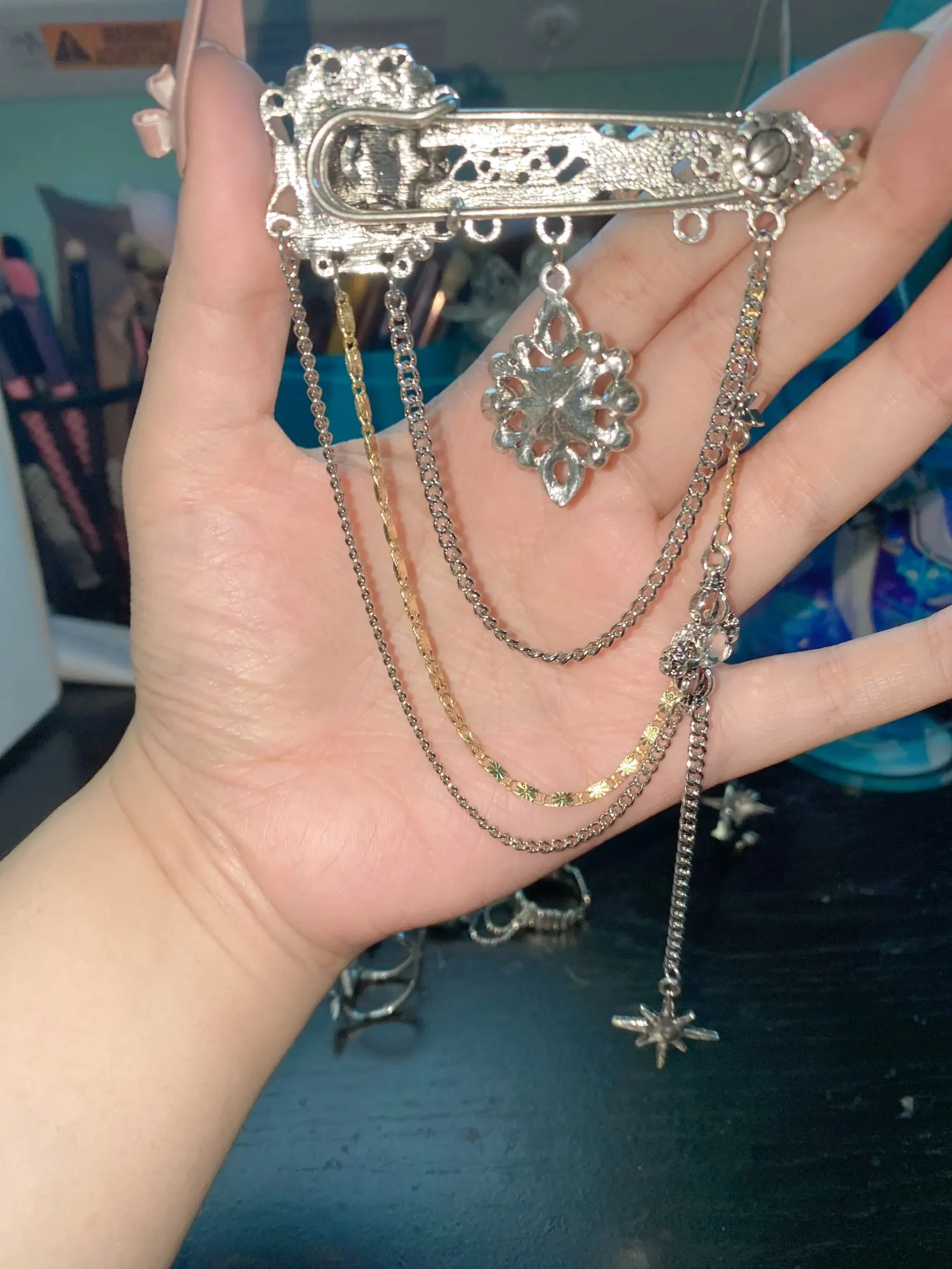 Темный серьги с подвесками в виде звезд из кулон брошь для мужчин и женщин в винтажном стиле, в стиле барокко броши украшения груди Брошь с цепочкой Pin модных аксессуаров