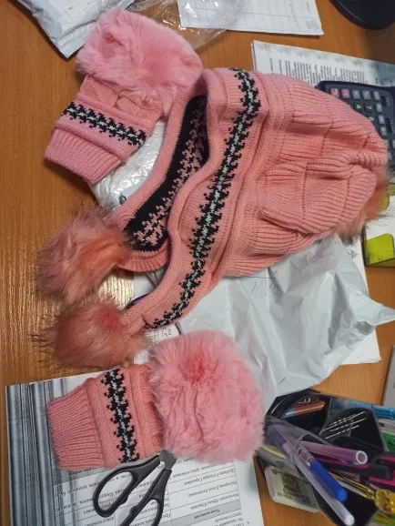 Теплые лыжные брендовые теплые перчатки с помпонами из кроличьего меха + вязаная шапка, комплект зимней женской шерстяной шапочки, толстая ...
