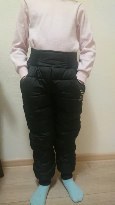Заказывала у разных продавцов двое штанов максимального размера на девочку 135 см средней комплекции. Обе пары впору без запаса, понравились, пошиты хорошо, удобные, теплые при -10-15 на колготки, довольно крепкие, не промокают, не продуваются. Серые от этого продавца размер 12 (160) - длина по шаговому шву 63 см. Серые толще и ткань плотнее, их носим активно гулять с курткой (очень объемная попа у штанов, смотрится странновато). Черные размер 14 (160) - длина по шаговому шву 65 см. Черные тоньше и легче, узкие, их носим в школу под пальто. Карман только ни к чему - низко пришит и слишком тугая кнопка для такой тонкой ткани - отрывается. Одеваются черные очень легко - подкладка скользит (не хлопок). У серых подкладка из бархатистого трикотажа, не пристегана к штанине, надевать неудобно. Еще не стирала - протираю тряпочкой. Коленку порвали уже - активно на ней ездили. Заказала бы снова и те, и те на следующую зиму, но размеров нет, придется выбирать другие.
