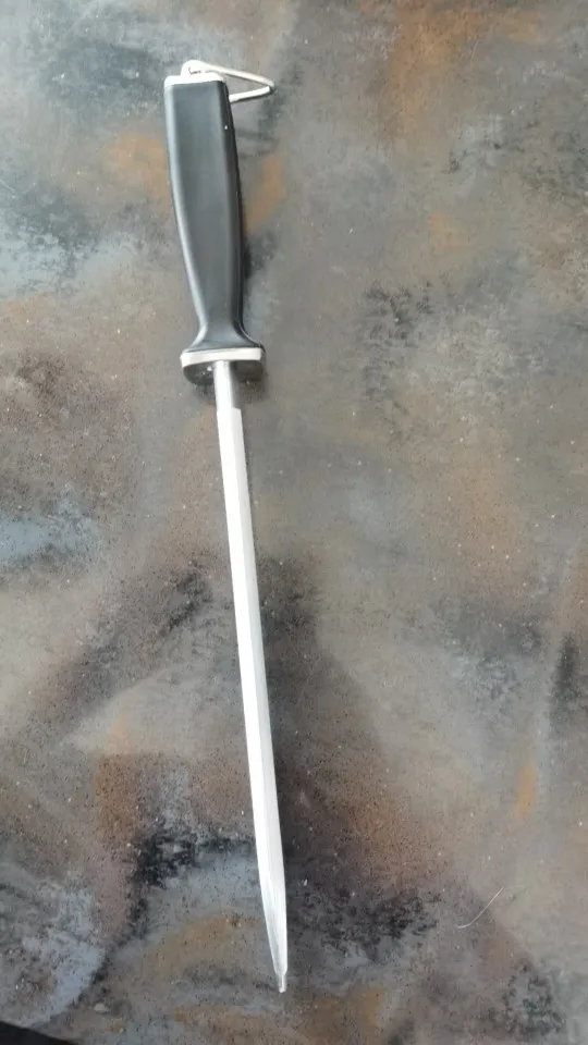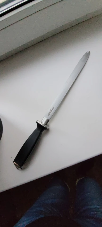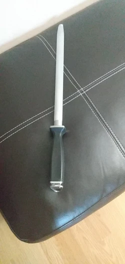Доставка быстрая, товар упакован отлично. Мусат мягкий металл берет хорошо, но если у метала закалка больше 50 единиц то мусатом правит кромку не советую. Для ножей из Японской стали вг= 10 не пойдет, убьете нож, придется затачивать нож за нова.