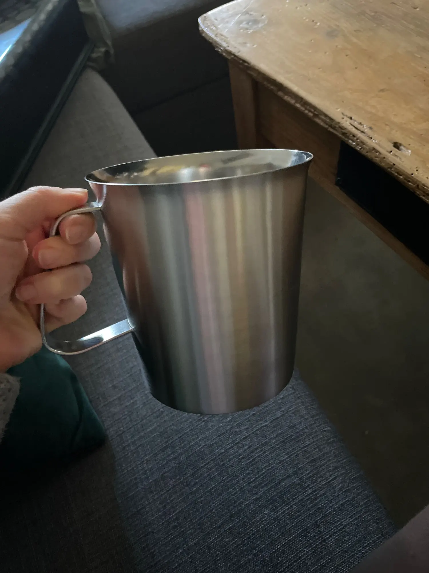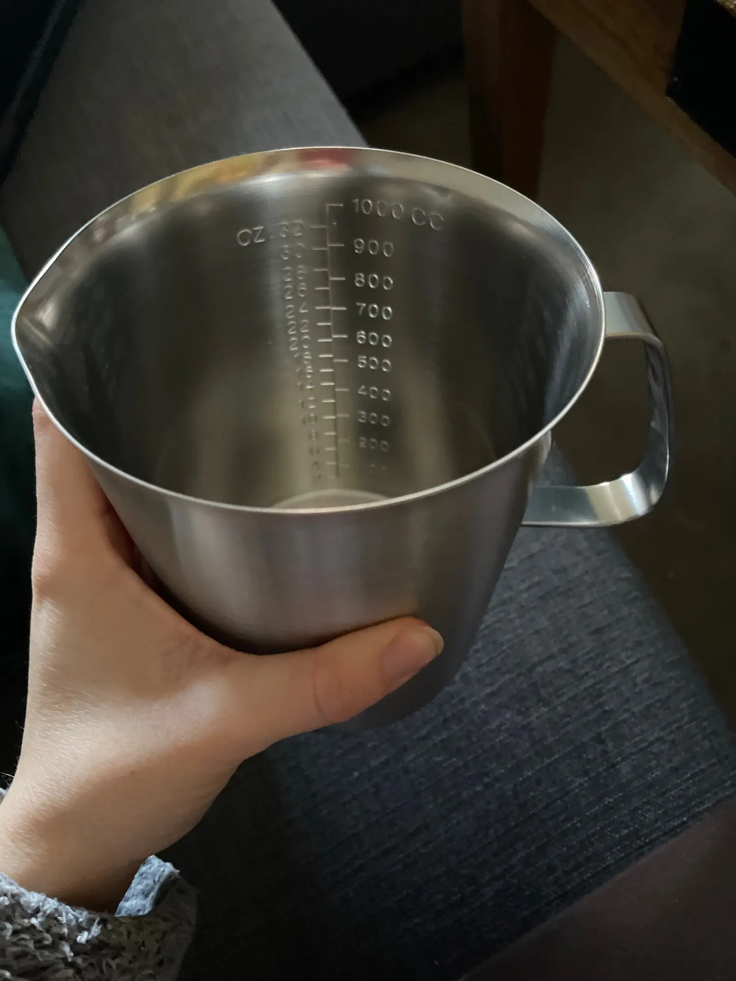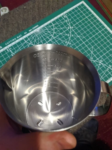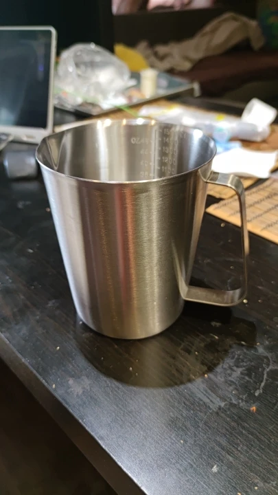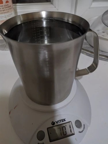 Хорошая мерная кружка. Пищевая нержавейка, толстое дно. Все ok. Быстро доставили. Рекомендую брать.