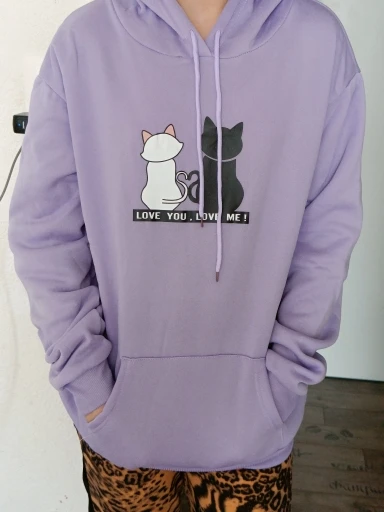 Толстовка Женская с длинным рукавом, уличная одежда, худи в стиле Харадзюку, свитшот с принтом милого кота, осень