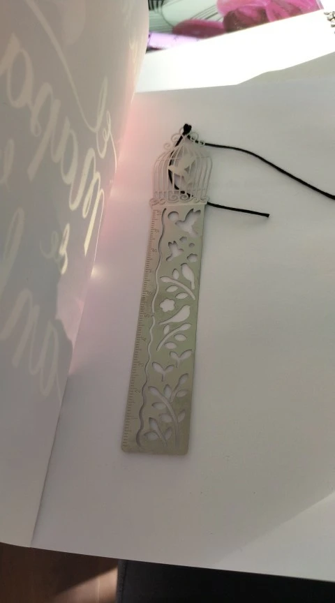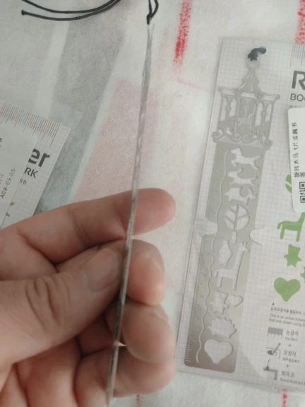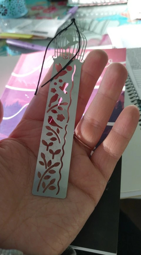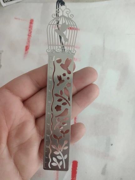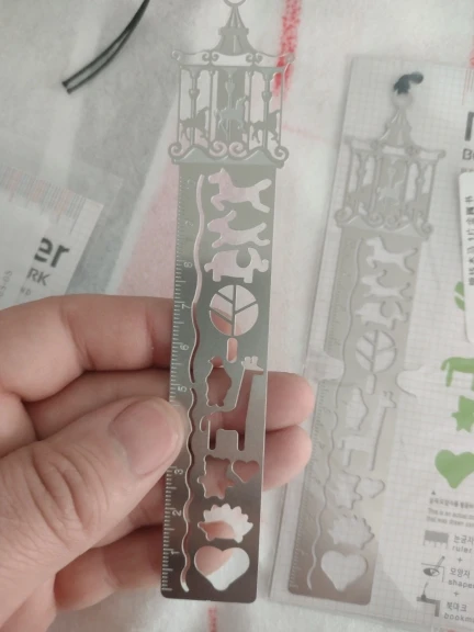 Товар был хорошо упакован, без повреждений. Небольшая, милая закладочка-трафарет-линейка, мне понравилась. Спасибо!
