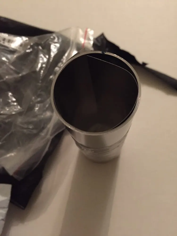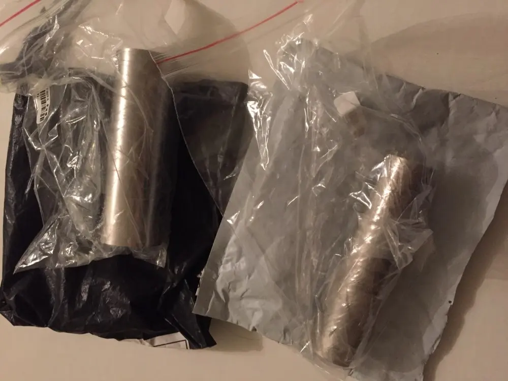 Напишу сразу один отзыв на две позиции, так как пришло в одном пакете, а внутри него два небольших пакета, темный - стальная фольга, светлый - титановая, ее поменьше. Пару фото для наглядности. 0.1 мм фольга из таких материалов достаточно твердая и острая.