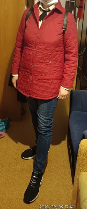 куртка тонкая на весну,сшита очень хорошо, размер брала по объемам фигуры,все совпало точно