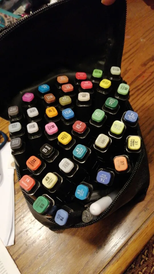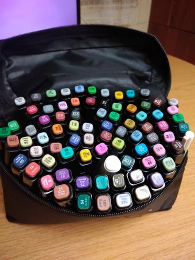 Товар доставили вовремя, всё хорошо, однако у одного маркера не был заправлен наконечник пуля, но это не страшно. В целом рисуют хорошо и цвета красивые хоть и не совпадают с колпачком.