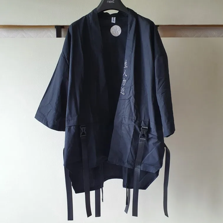 Традиционное японское кимоно, кардиган, модные черные хлопковые костюмы для косплея самурая, хаори, пальто в китайском стиле, уличная одежд...