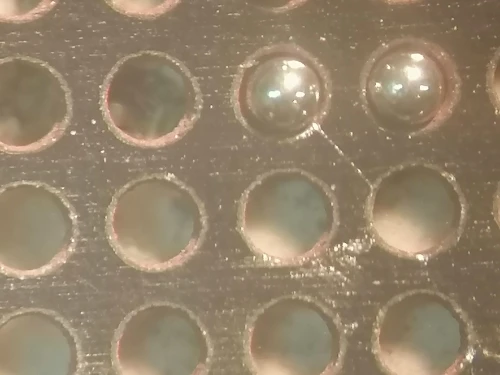 пришло за месяц. упаковано нормально. трафарет довольно тонкий, скорее всего катать им только шарами. но отверстия ровные, качество хорошее. рекомендую.
