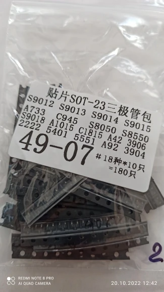 ТРАНЗИСТОР набор сортированных (СОТ-23) 18 видов * 10 шт. = 180 шт. 2N2222 S9013 S9014 S9015 S9018 S8050 S8550 5551 5401 2N3904 2N3906 C1815