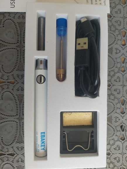 Классный паяльник. Дошел очень быстро, упакован хорошо, коробочка прям фирмовая. Очень прикольный провод - слишком мягкий. Вообще в описании паяльника написано "портативный" - поэтому я подумал что у него внутри есть свой аккумулятор и пытался сначала включить его без провода :) Очень жаль, что в комплекте только одно жало иглообразное, а мне нужно плоское.