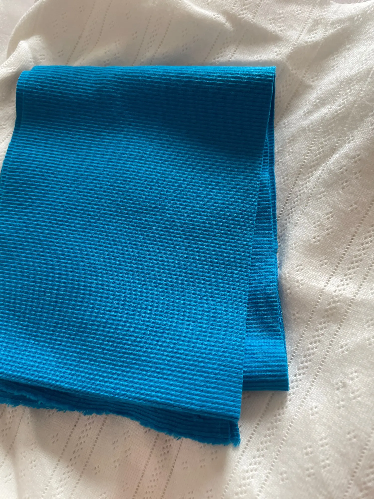 Мягкое кашкорсе, подойдет на воротник и манжеты. Цвет не совсем белый, немного молочный, поэтому лучше будет смотреться с цветными тканями. С продавцом не общалась
