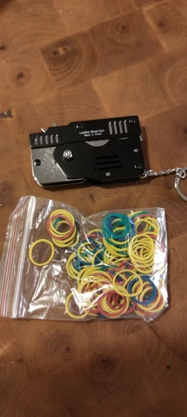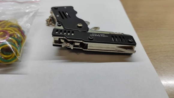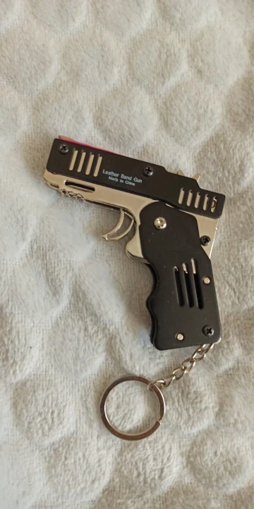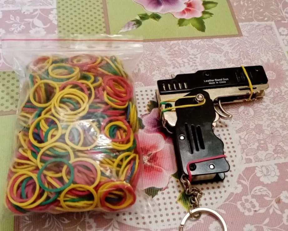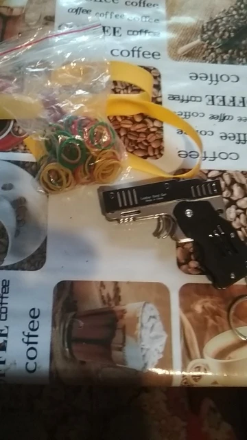 Цельнометаллический револьвер. 6 зарядов, сделан качественно. В зависимости от толщины резинки стреляет на 3-5 м. Покупал с доставкой из РФ + 500 резинок с купоном за ~400₽. А вообще цена-конь. Но штука для ценителей прикалываться хорошая)
