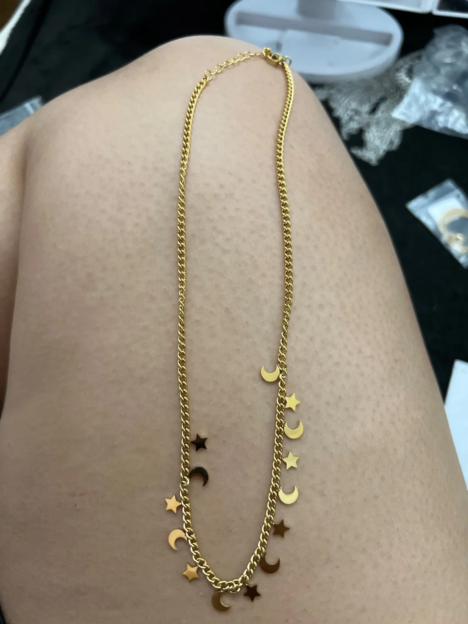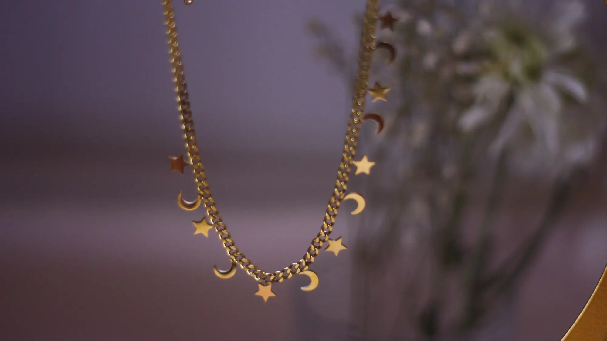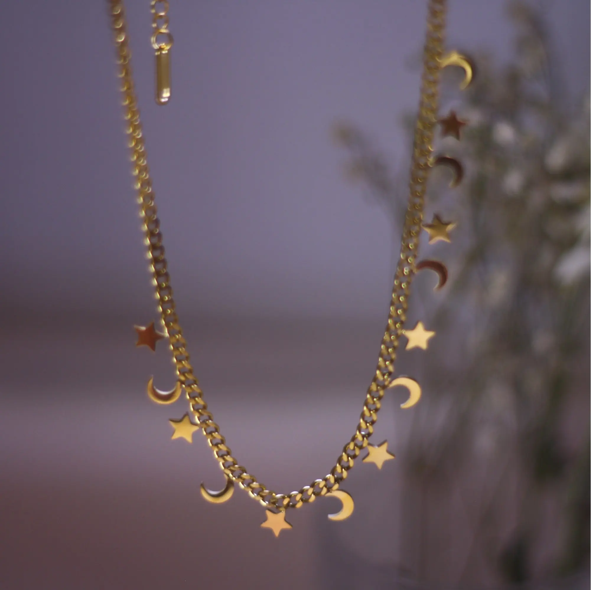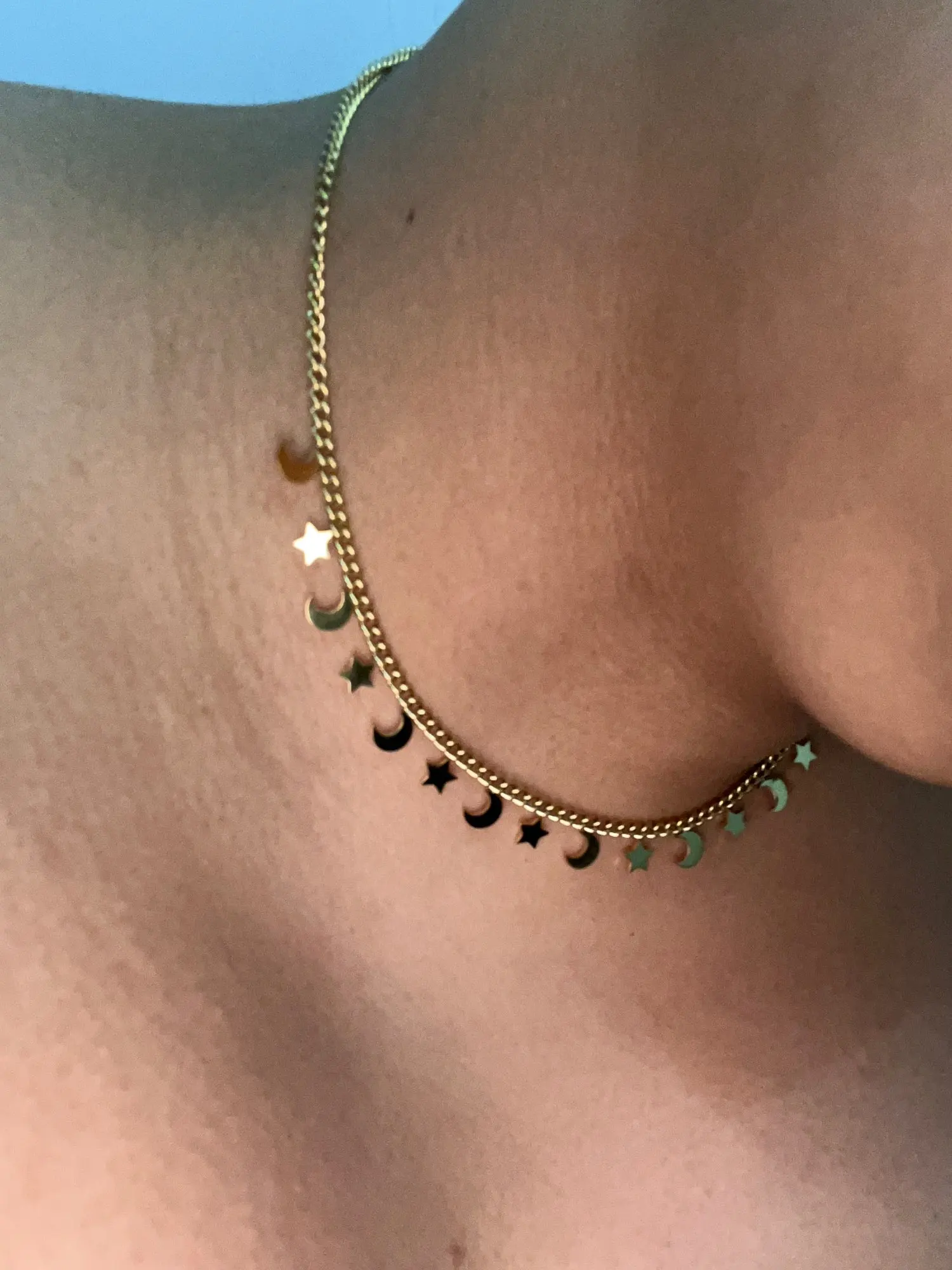 Цепочка-чокер женская из нержавеющей стали золотистого цвета с изображением звезды и Луны
