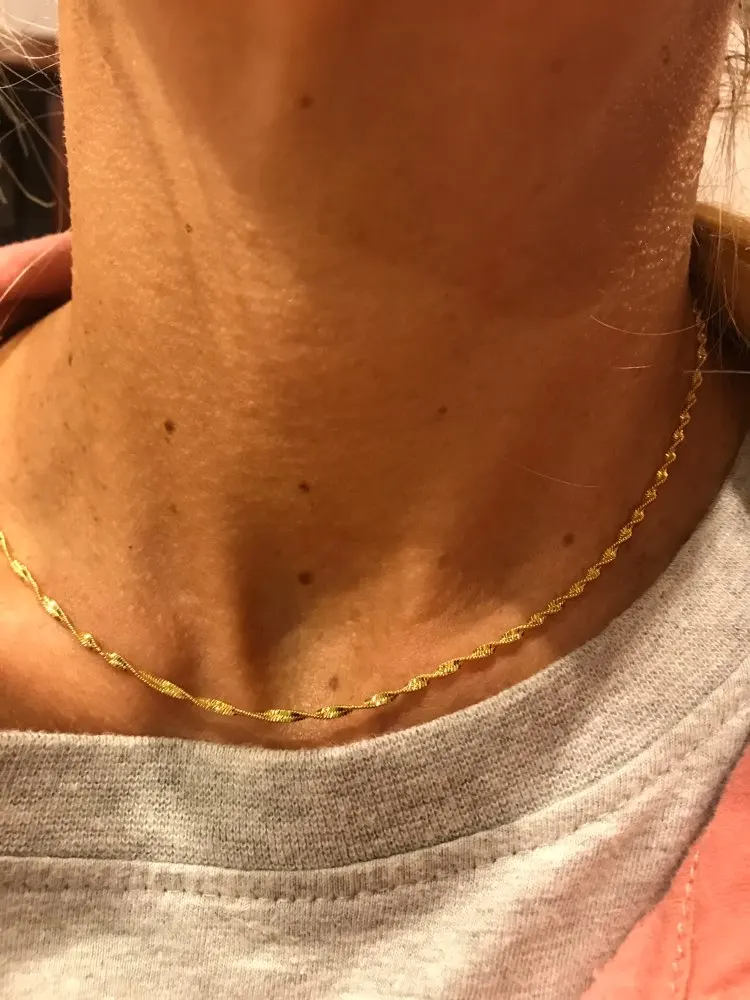 Цепочка с короткими и длинными волнами для мужчин и женщин, Ювелирное Украшение в сингапурском стиле, цвет желтое золото, 3 мм, 35-60 см
