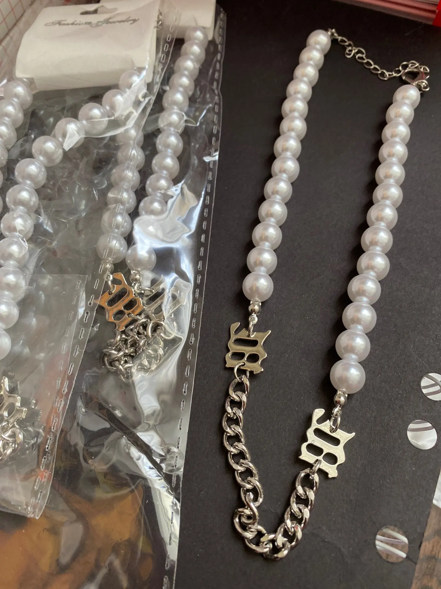 Цепочка Женская многослойная с имитацией жемчуга, ожерелье в стиле хип-хоп с перекрестными бусинами из металла, колье неправильной формы, ...