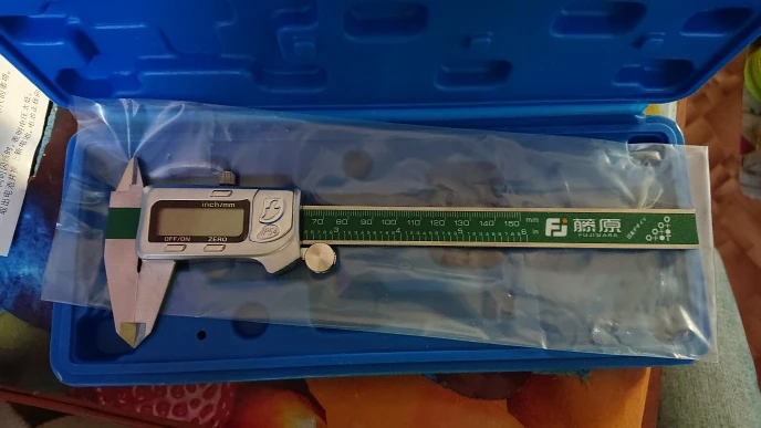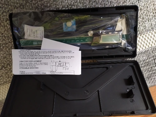 Доставка до Рост. обл. 4 дня. Прибор солидный, тяжоленький, зазоров нет, губки ровные, люфтов нет ( только соосный на губках немножко). После 20 прогонов, в 0 становится чётко, до 11 см. показал точно, до сотых, после погрешность составила 0,01 мм ( проверял на работе у токарей специнструментом ). Цвет суппорта тёмно-металический, дисплей чёткий без подсветки, 2 батарейки. О долговечности сказать ничего не могу, время покажет. Из недостатков, - жалко пачкать, царапать и людская зависть.