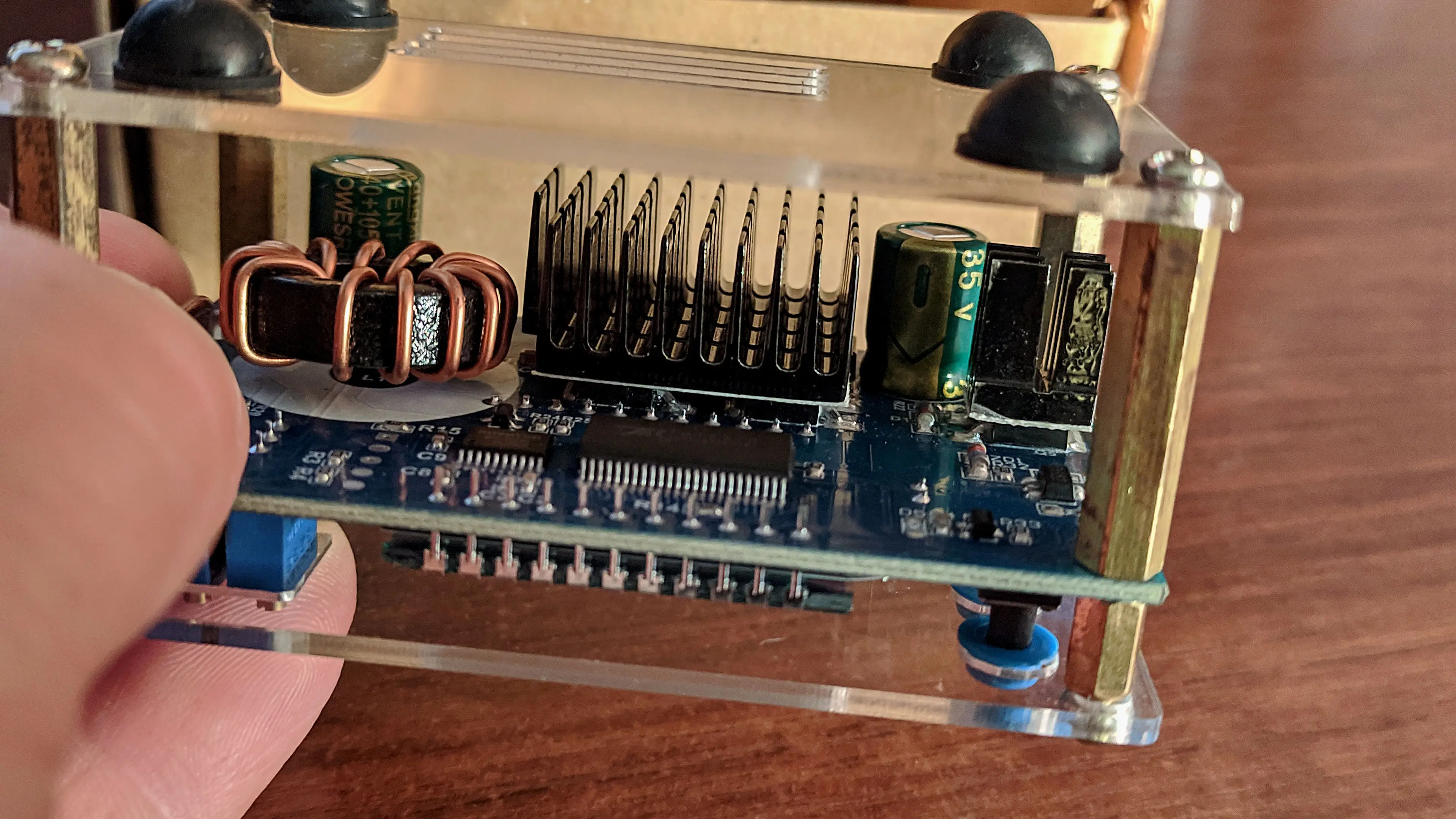 хорошо работает. приколхозил непосредственно на транзисторы радиаторы, т.к. из комплекта теплоотвод клеится на плату с обратной стороны.