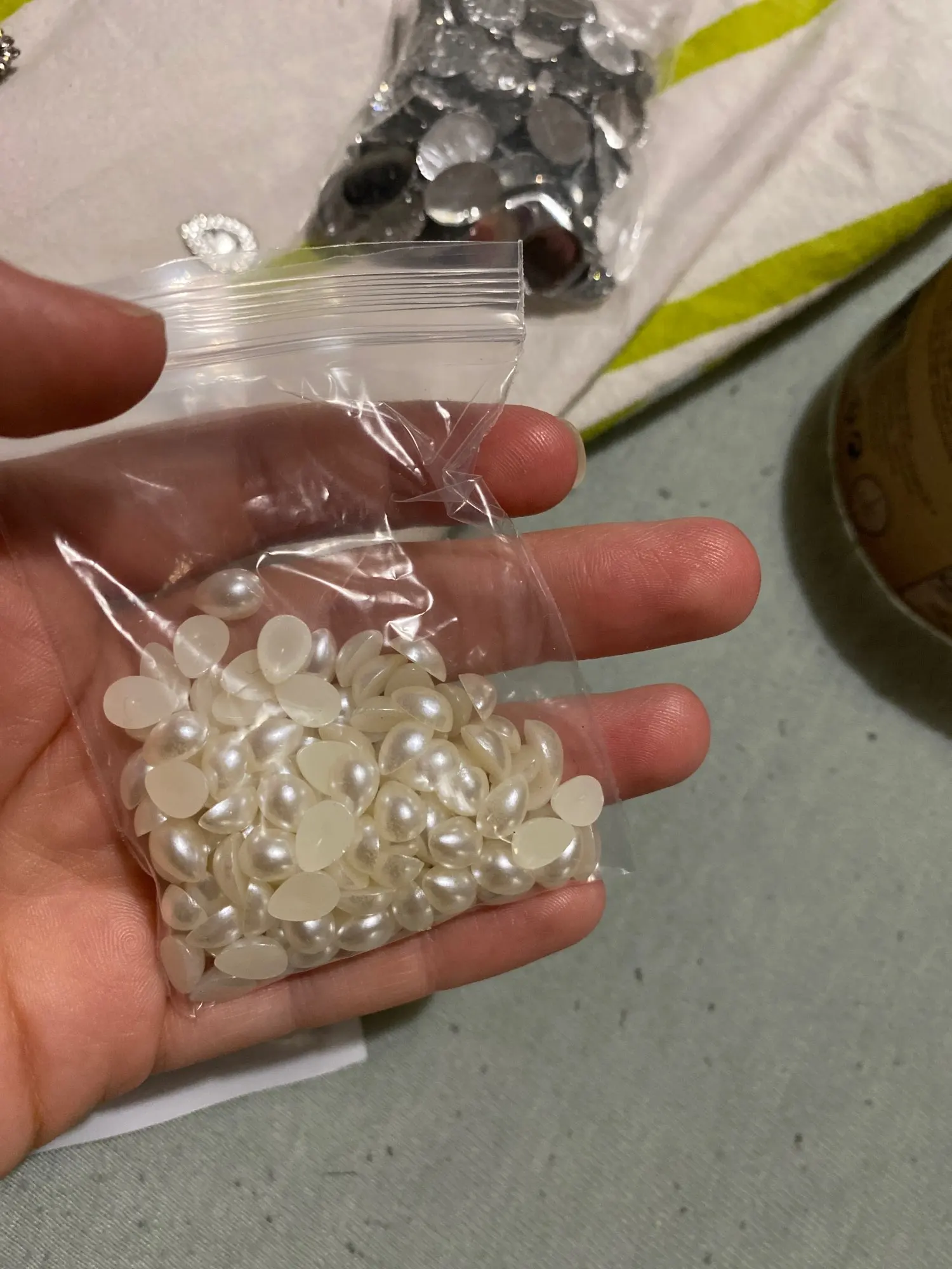 Попалось много бусин с повреждённым перламутром.