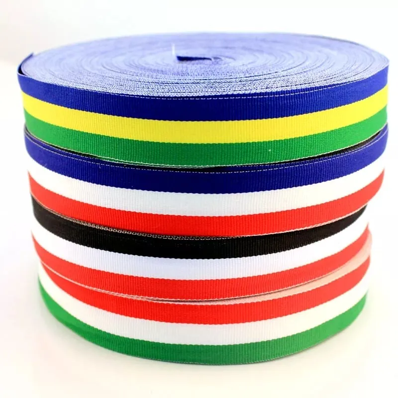 отличная лента, синтетика, очень плотная и мягкая одновременно, 1м, черные полоски тонкие, в глаза не бросаются, края нужно оплавлять, распушаются, посылку бросили в почтовый ящик, качество хорошее, спасибо