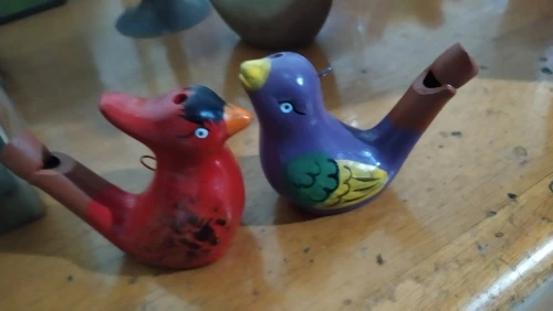 одна птичка на голове со смещённым отверстием, свистит хуже...