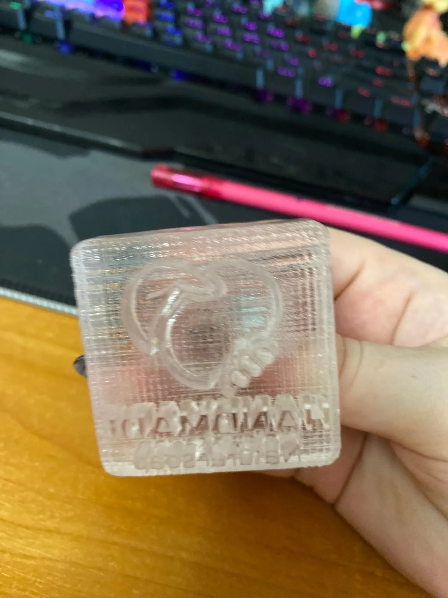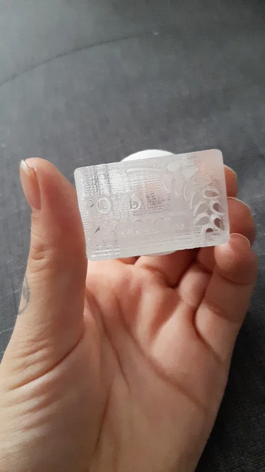 Штамп сделан аккуратно, пока на мыле ещё не пробовала, но думаю, что всё получиться хорошо. Позже оставлю дополнительный отзыв. Материал жёсткий, ручка красивая, держать в руке удобно. Пришел упакованный в картонную коробочку и в пакетике с пупыркой.