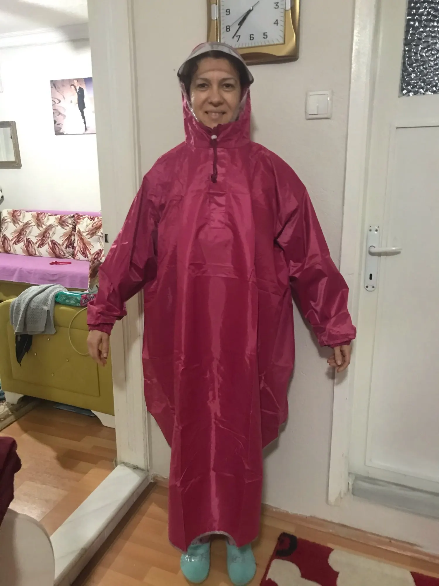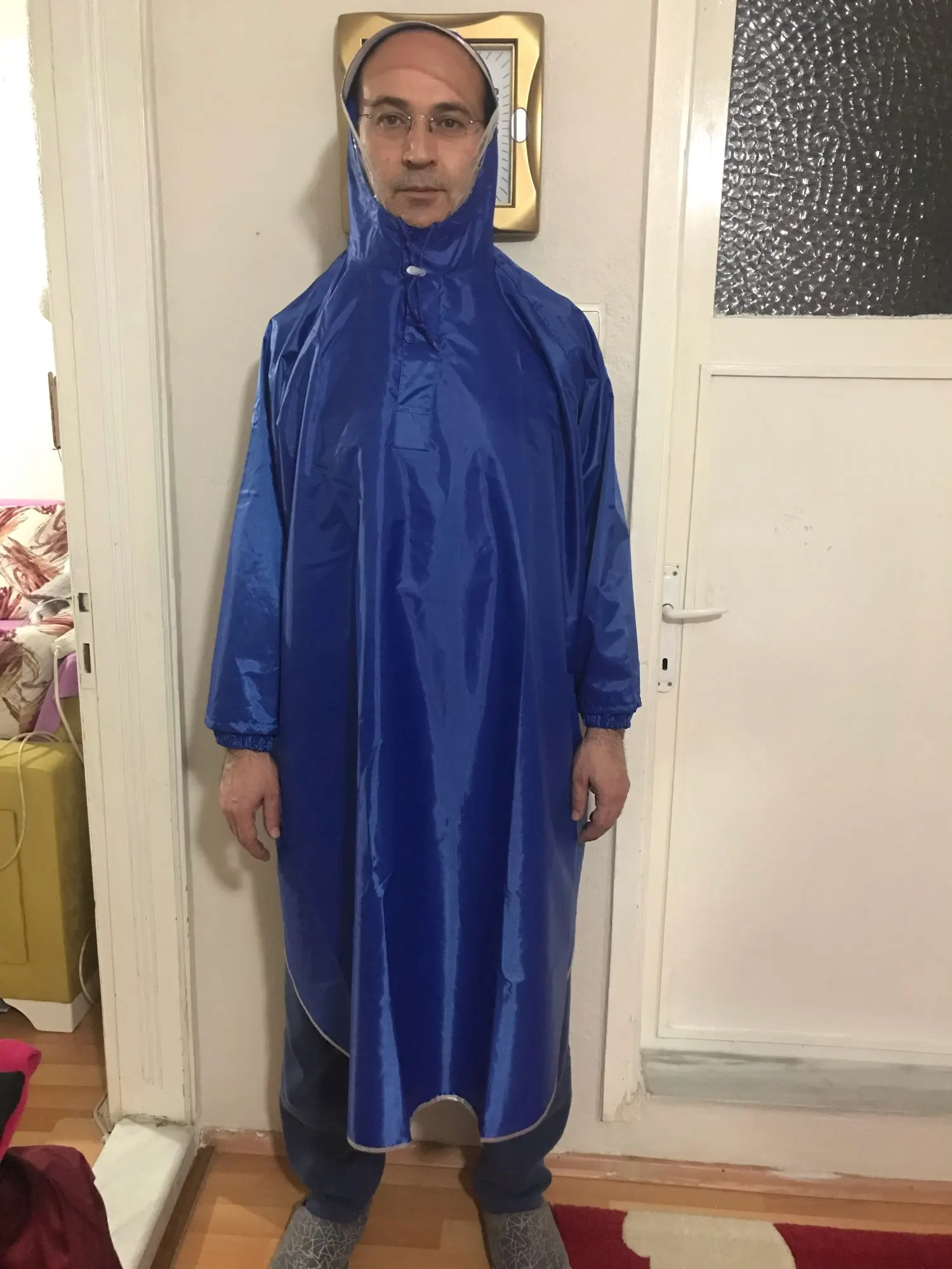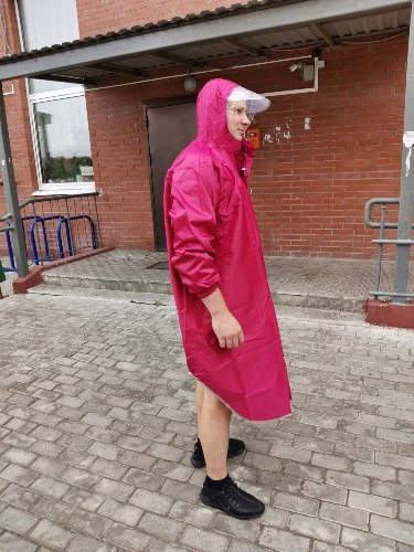 Материал очень плотный и прочный Очень удобный Но кому нужен легкий должевик, этот дождевик не ваш вариант.