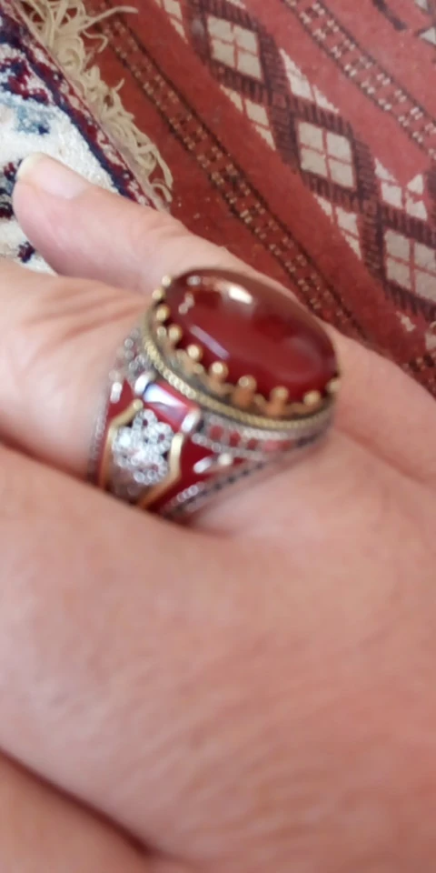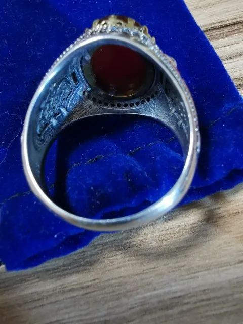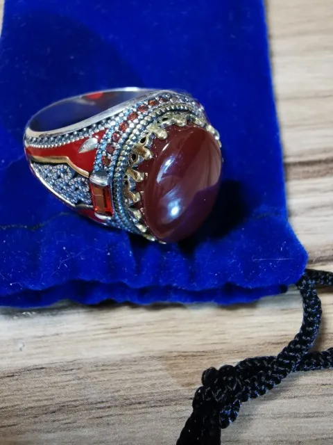 Турции ювелирные изделия Для мужчин кольцо с красный натуральный агат камень 925 стерлингового серебра Винтаж королевской короны CZ эмаль кольца для Для женщин Для мужчин мужской подарок