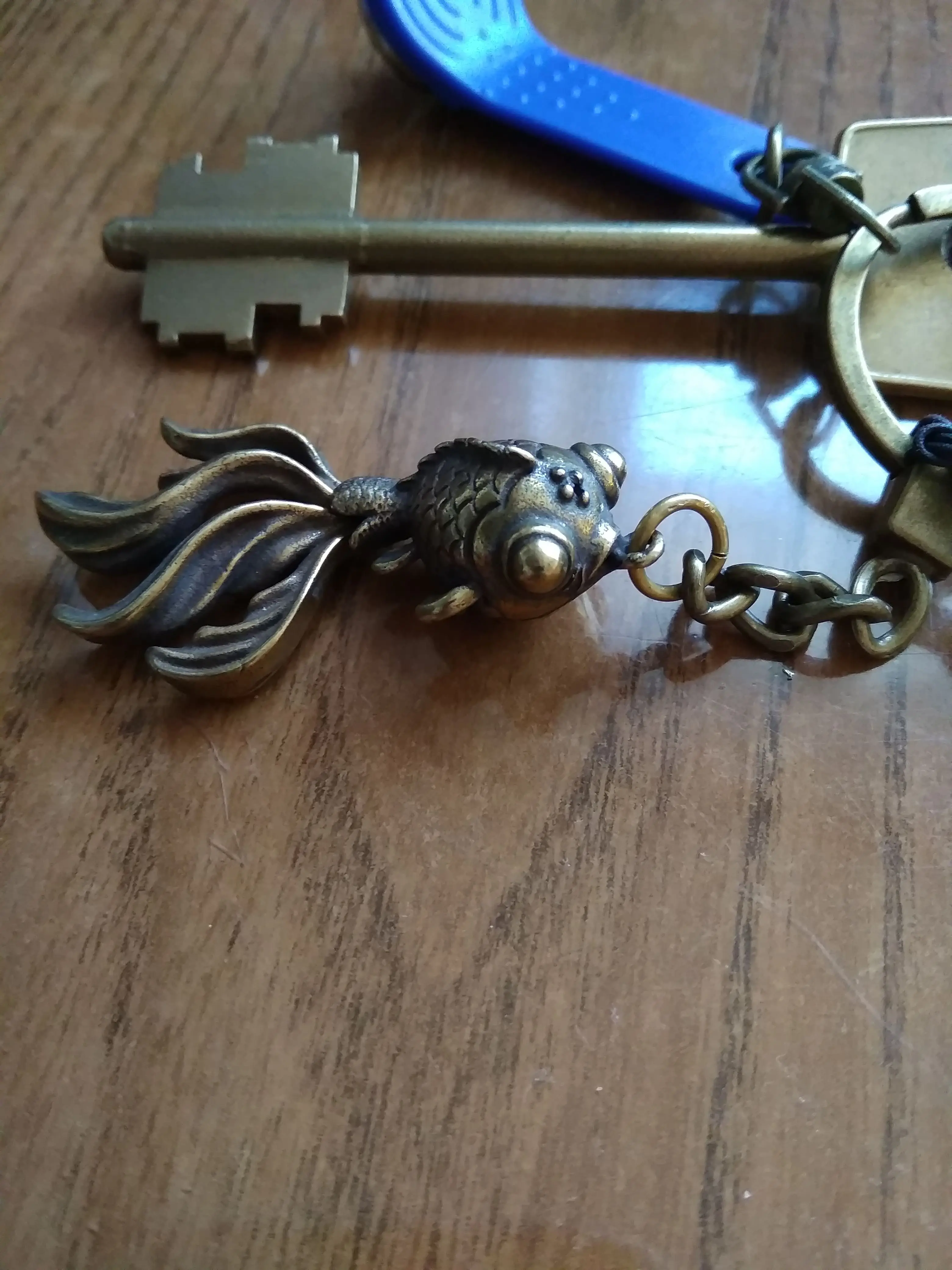 Твердая медная Золотая рыбка, брелок, подвеска, винтажный латунный металлический Рыбка, Брелки/кольца, сумка, очаровательный держатель для ...