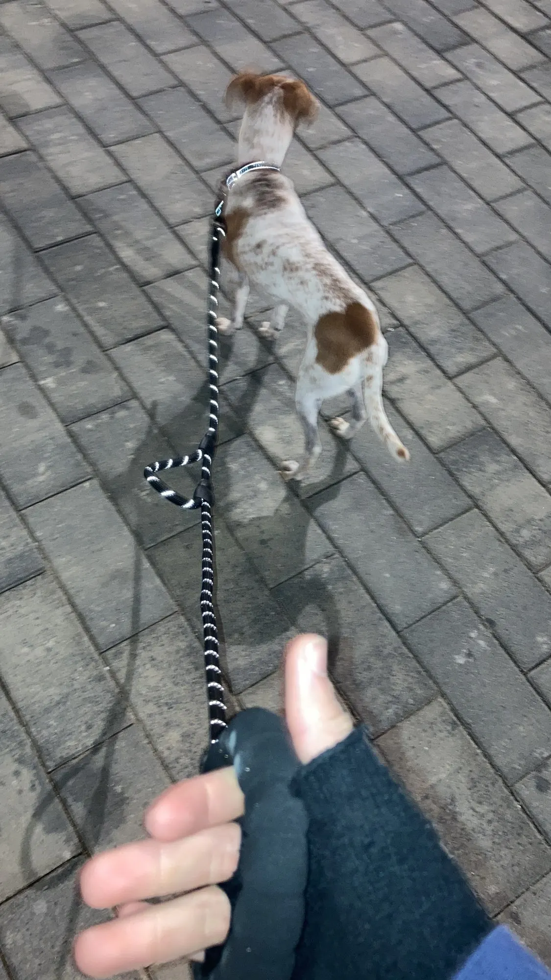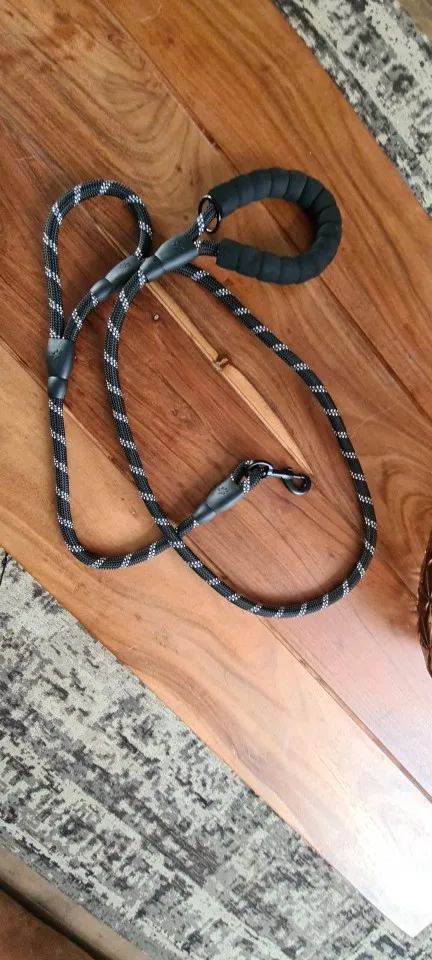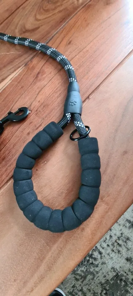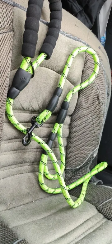 Поводок на вид очень хороший.ручки удобные, поводок немного пружинит. В темноте ещё не гуляли. Отправили быстро.
