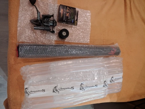 Пришло все как описано. Фидер средненький а катушка по первому восприятию хорошая попробую в ближайшие выходные. А вот мононить или шо воно такое оставляет желать лучшего но такой на сезон хватает. Продавца рекомендую пришло три недели и два дня.