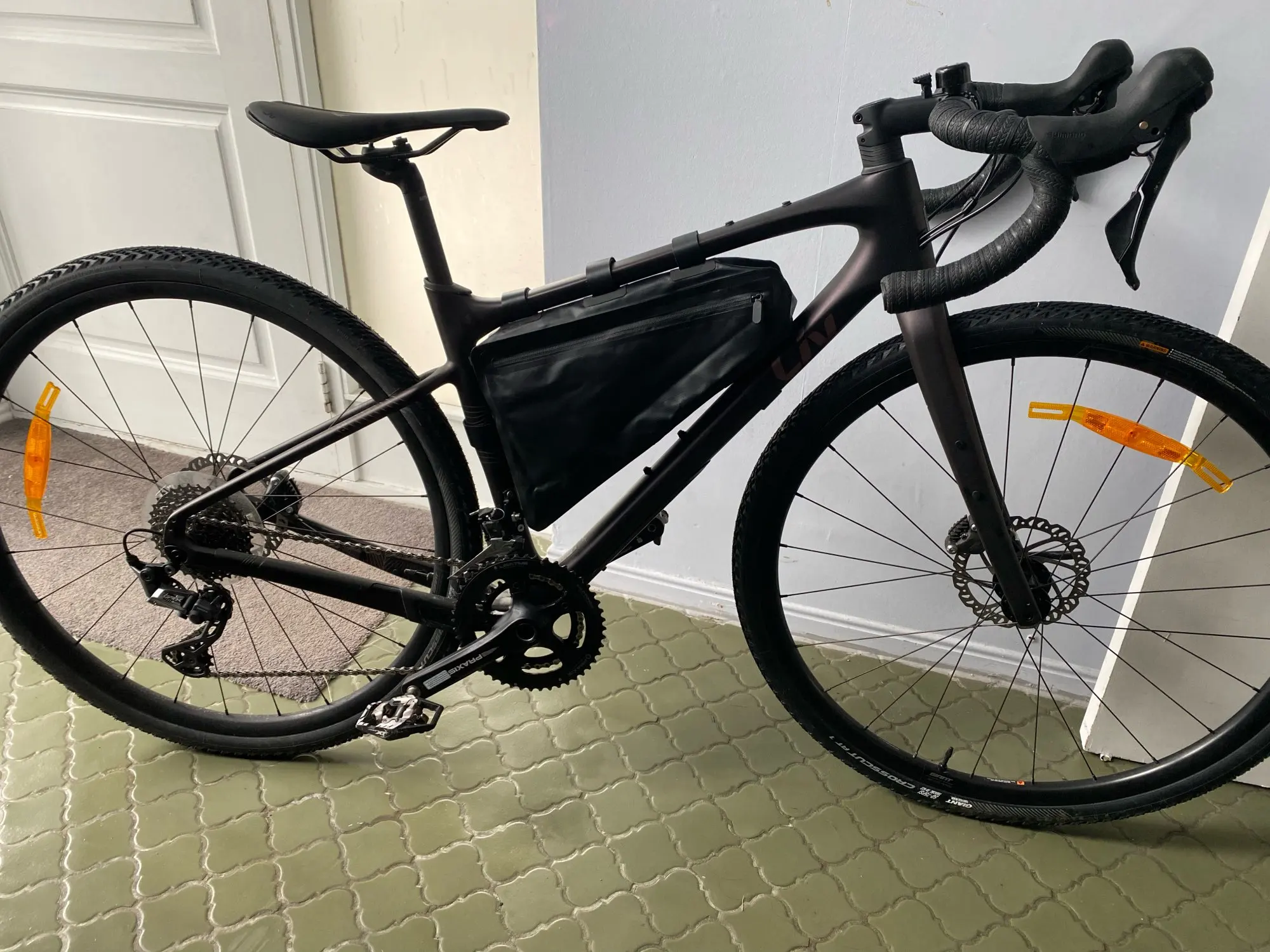 материал что-то типа резины, выглядят хорошо, полностью черно-серый