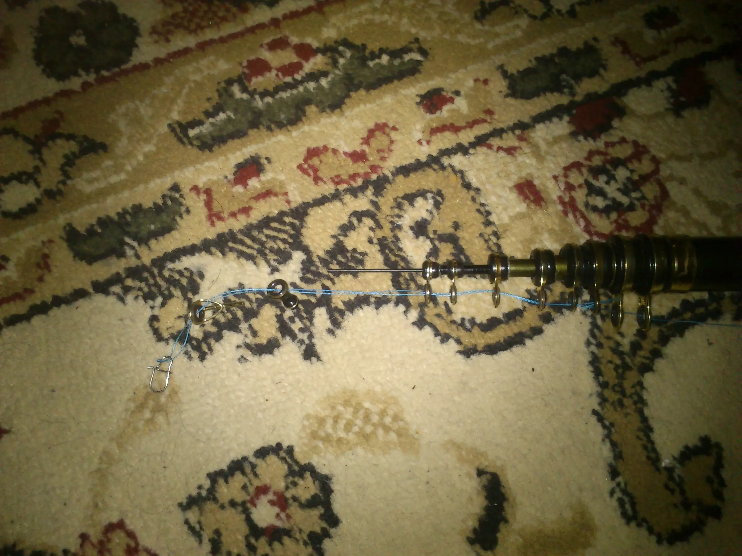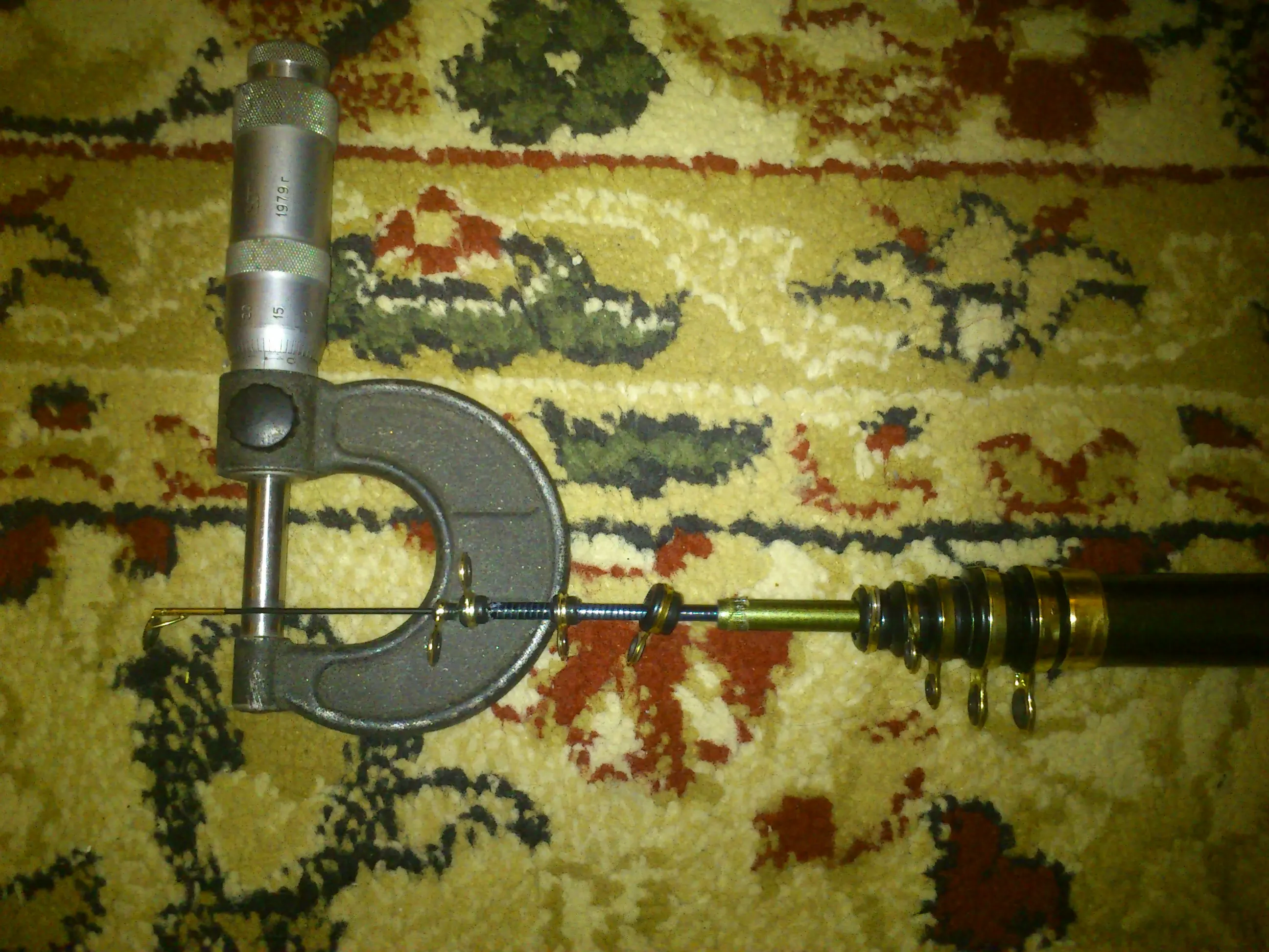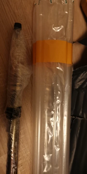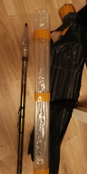 5,4м упаковка - воздушные трубы, одно кольцо плохо приклеено, кончик 1,15мм, при тесте 1кг (больше не рискнул) согнулась на 360° и обломился маленький тюльпан