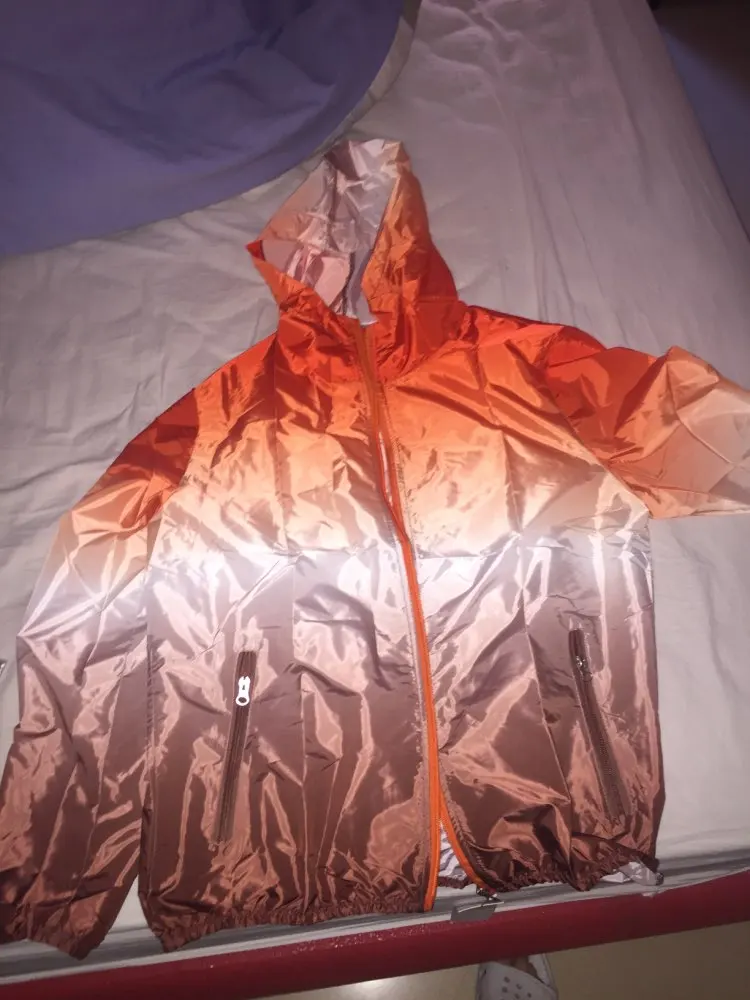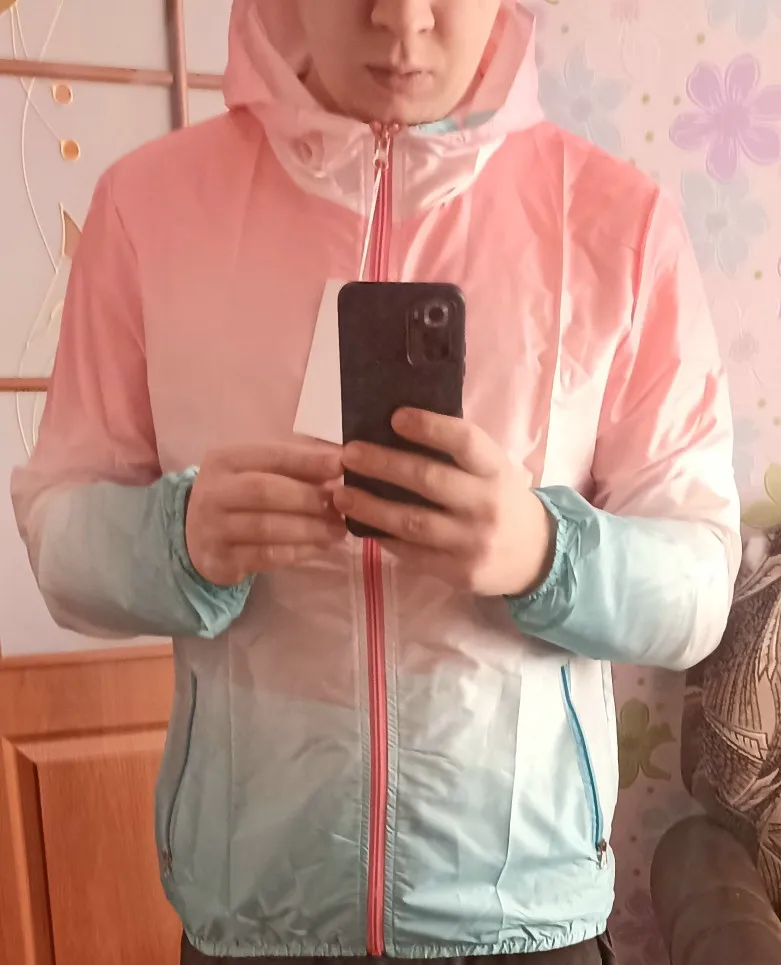 Шикарная ветровка , то что я хотела , тоненькая как бумажка , но прочная , для спорта бега я буду самая красивая , прекрасно и качественна сшита , никаких ниток ни дырок , отличная ветровка 5 звёзд , упаковка и доставка 5 звёзд