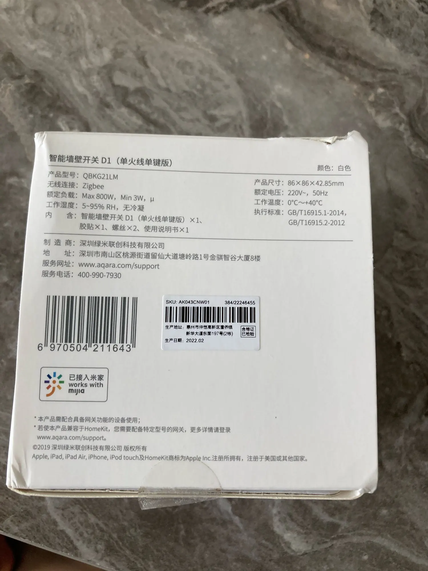 Умный выключатель Aqara D1, беспроводной переключатель с одним пожарным проводом ZigBee, для умного дома, управление светильник, работает с приложением Mi home