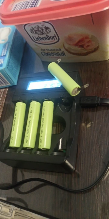 Тестер показывает полтора вольта на каждом аккумуляторе. Один из аккумуляторов AAA длиннее других на 1 мм !!! , не лезет в некоторые девайсы. Даже в родной зарядник с трудом вставляется. И зарядник странный - на позиции под номером 2 всегда показывает, что аккумулятор заряжается, этот же аккумулятор на других позициях показывает как полностью заряженный.