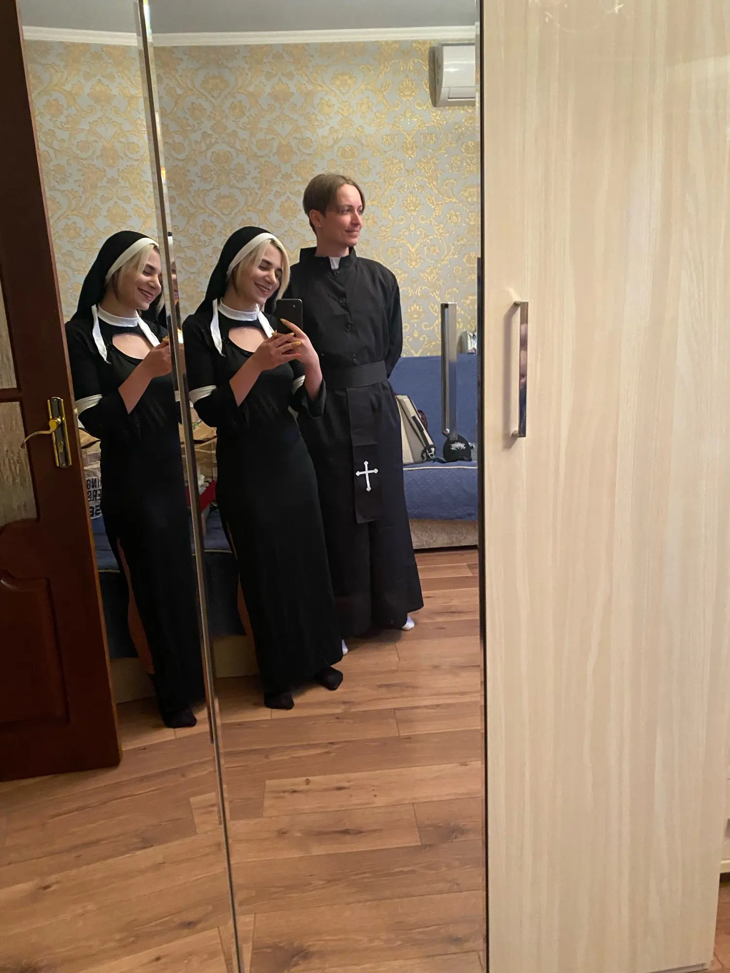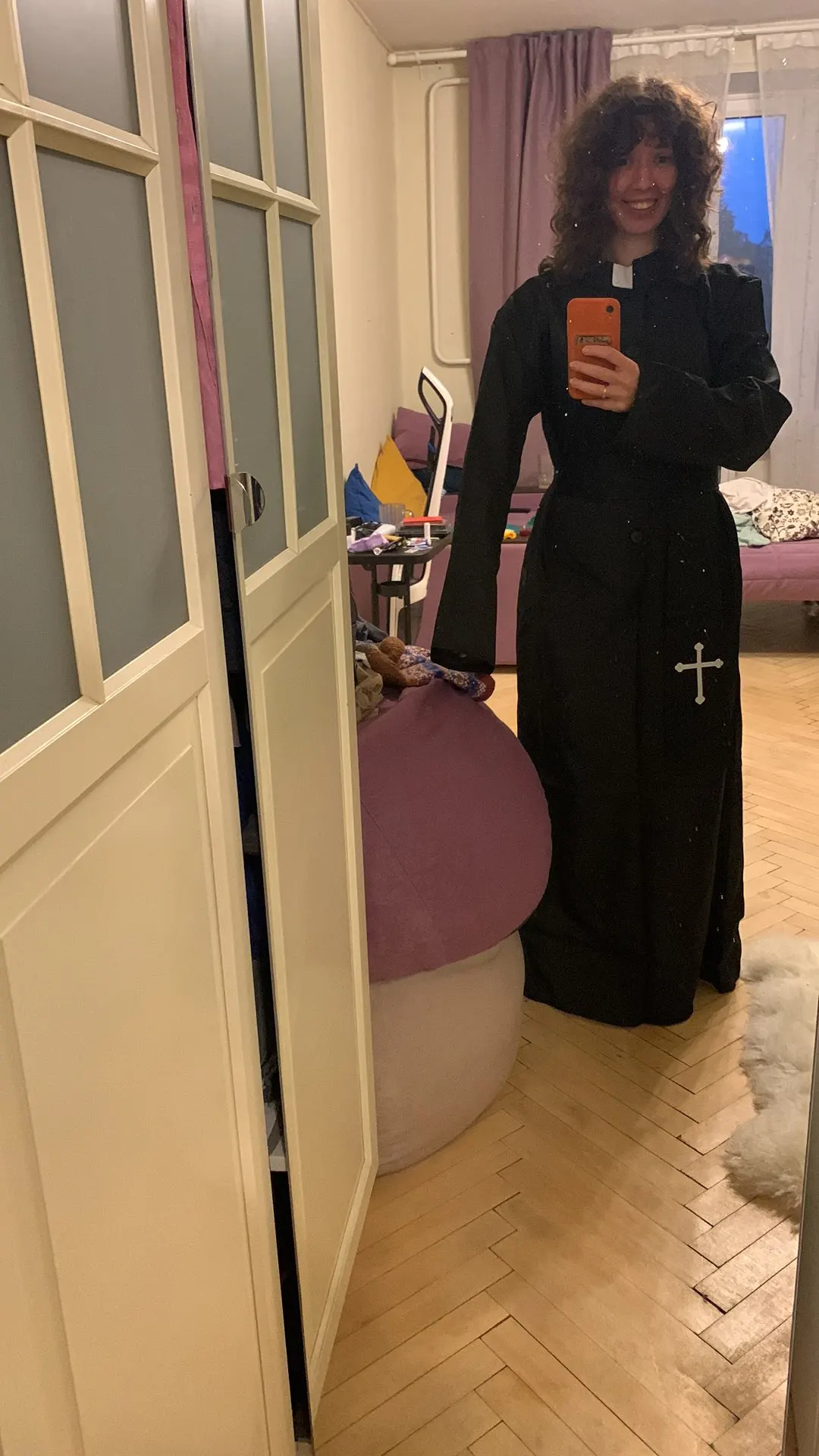 Низ костюма пришлось распороть по бокам, чтобы была возможность ходить. Поскольку изначально представляет из себя длинную узккю юбку.