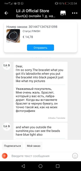 Браслет с лабрадоритом пришёл быстро, думала камушки будут крупней. В описании не был указан размер бусин ,но браслет при этом симпатичный, камушки блестят и играют на свету.