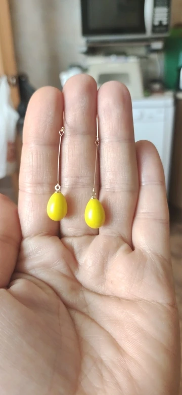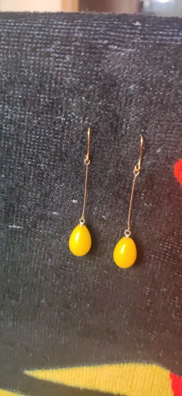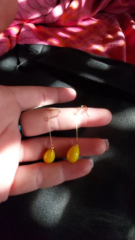 Серьги очень нежные, лёгкие, яркий жёлтый огонёк как будто подвешен в воздухе, настолько тоненькая подвеска. Очень довольна. За быструю доставку особое спасибо