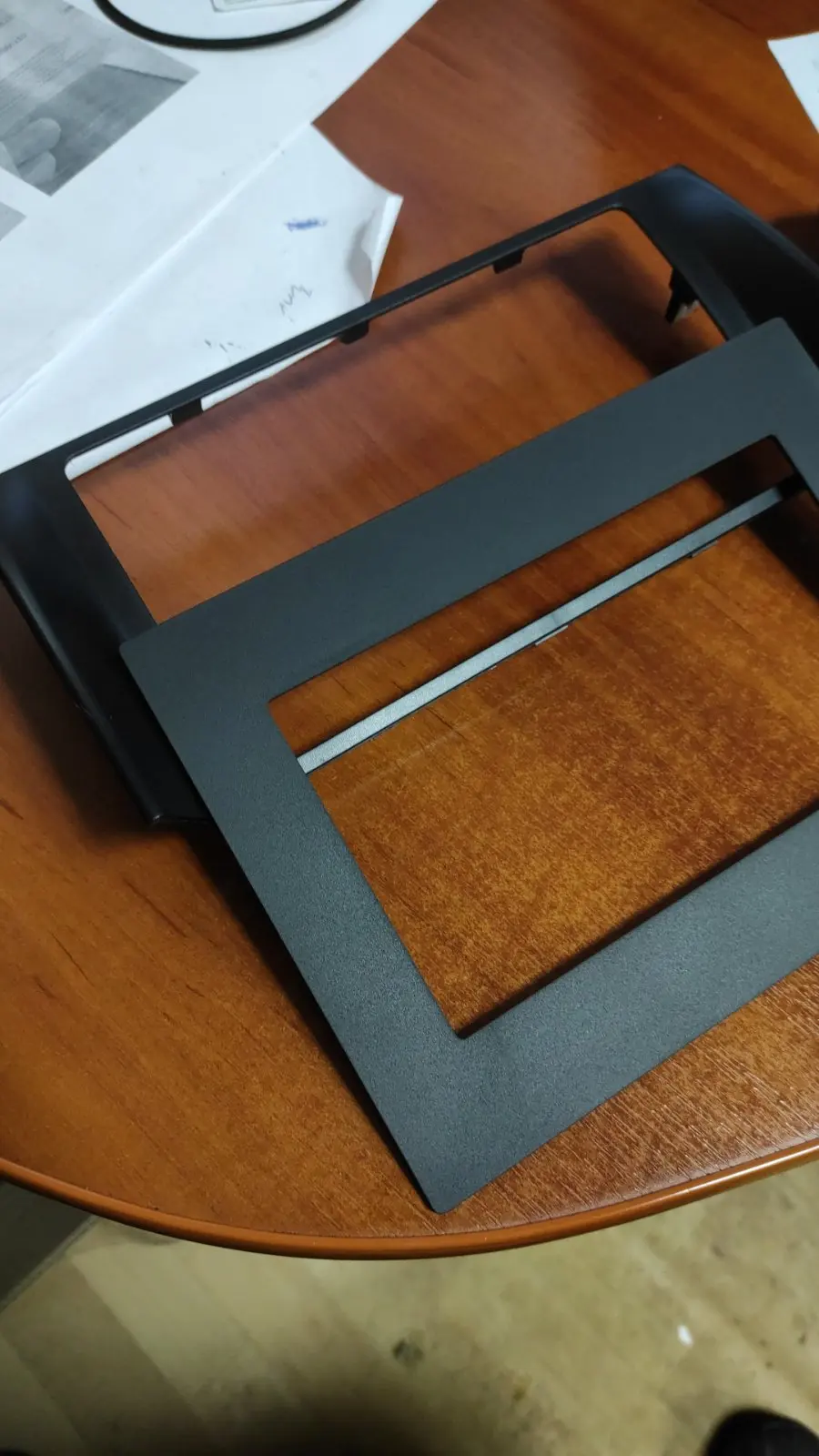 кусок пластика, среднего качества.. матовая, отличается от цвета панели в сторону сероватого оттенка. как "болванка" для последующей обработки и подгонки вполне себе подойдет.