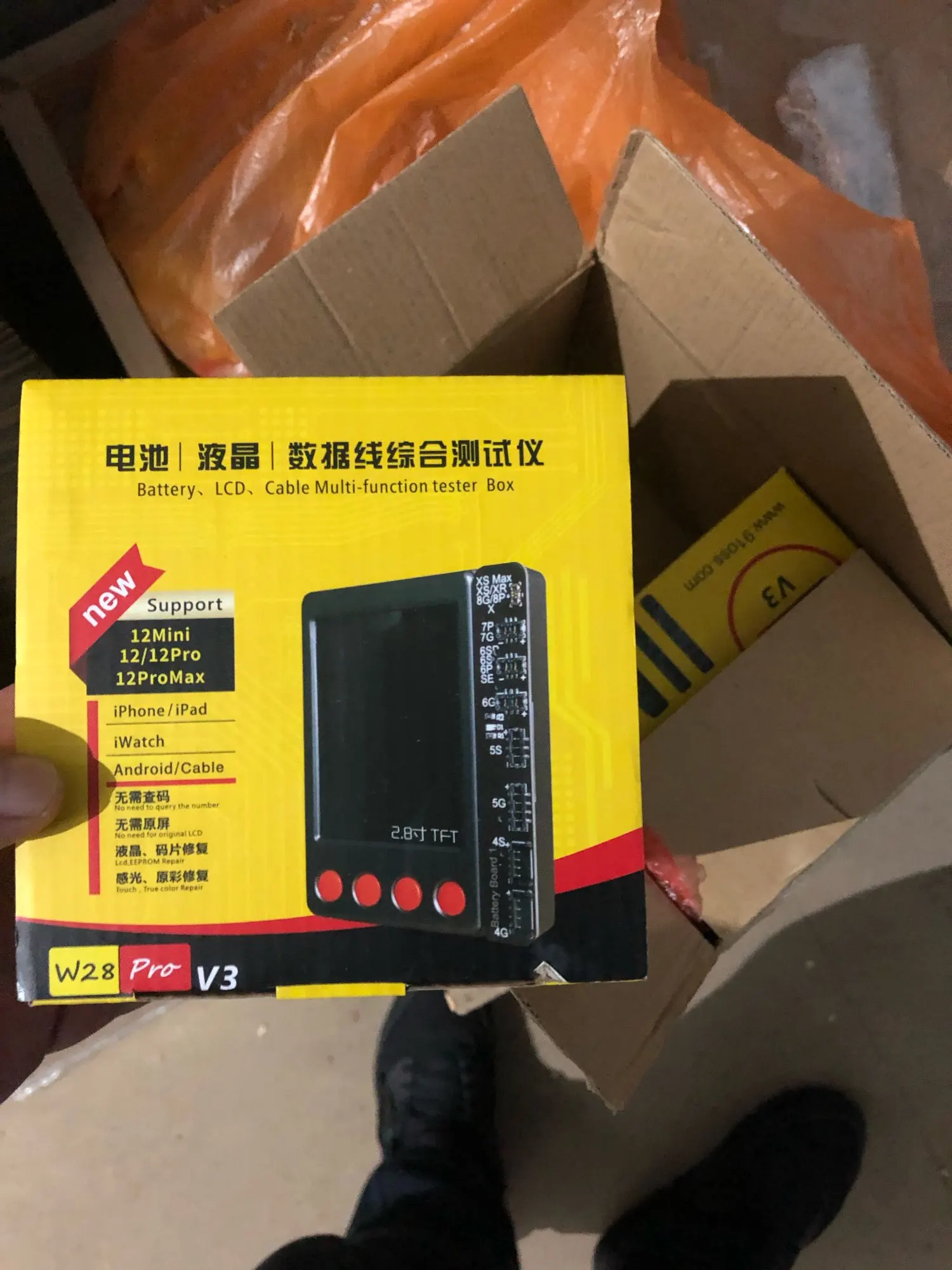Универсальный Тестер аккумулятора W28 Pro, ЖК-экран, Фоточувствительный программатор EEPROM для iPhone, Lightning, тестер зарядного кабеля для наушников