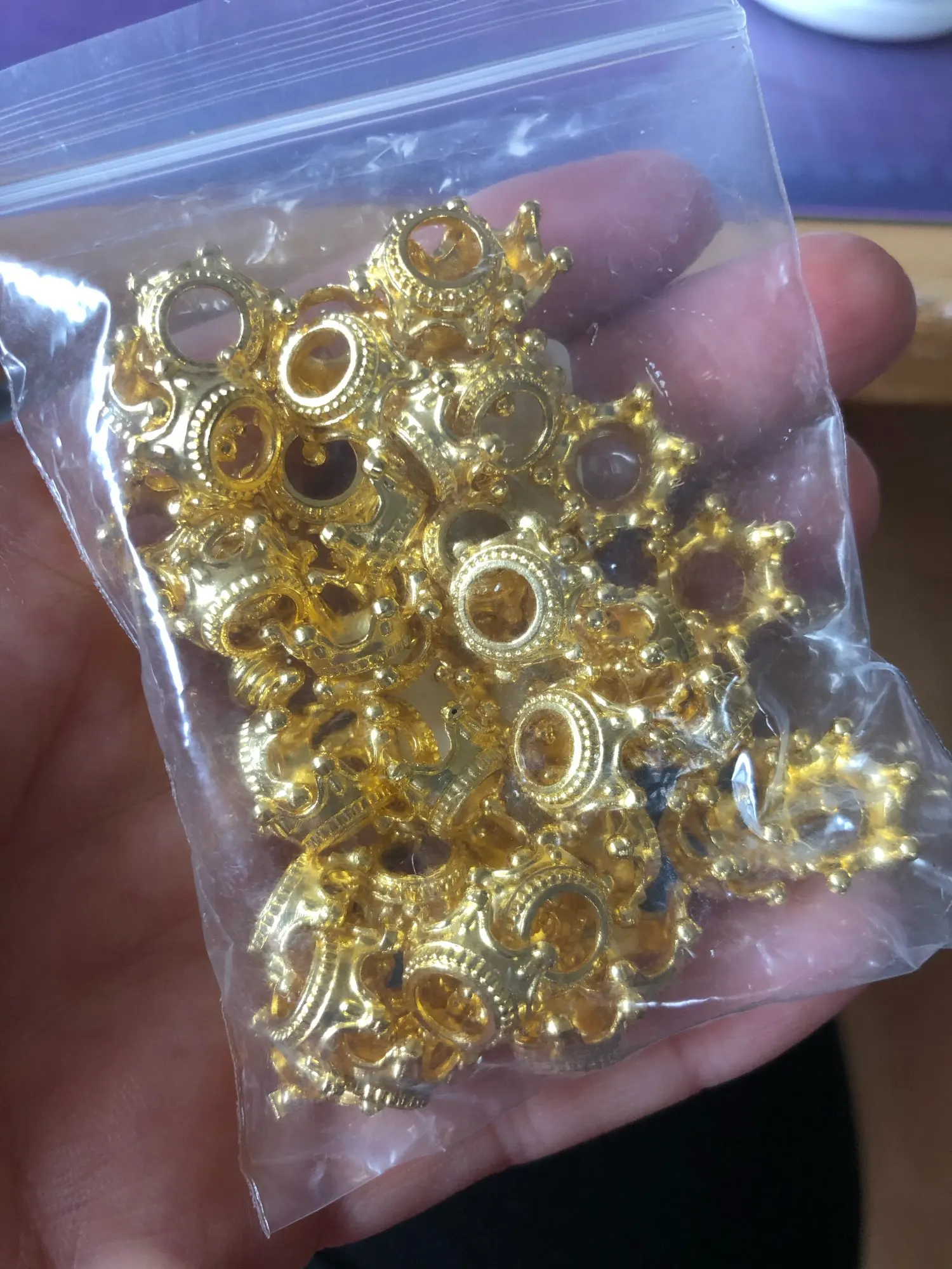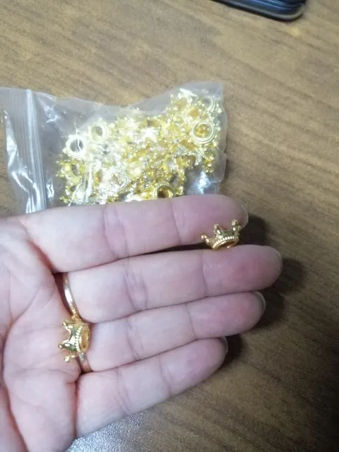 Упаковка из 50 шармов в форме короны, свободные бусины, подвески для самостоятельного изготовления, поиск ювелирных изделий с золотым покрытием