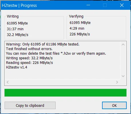 Скорость записи меньше чем заявленная.