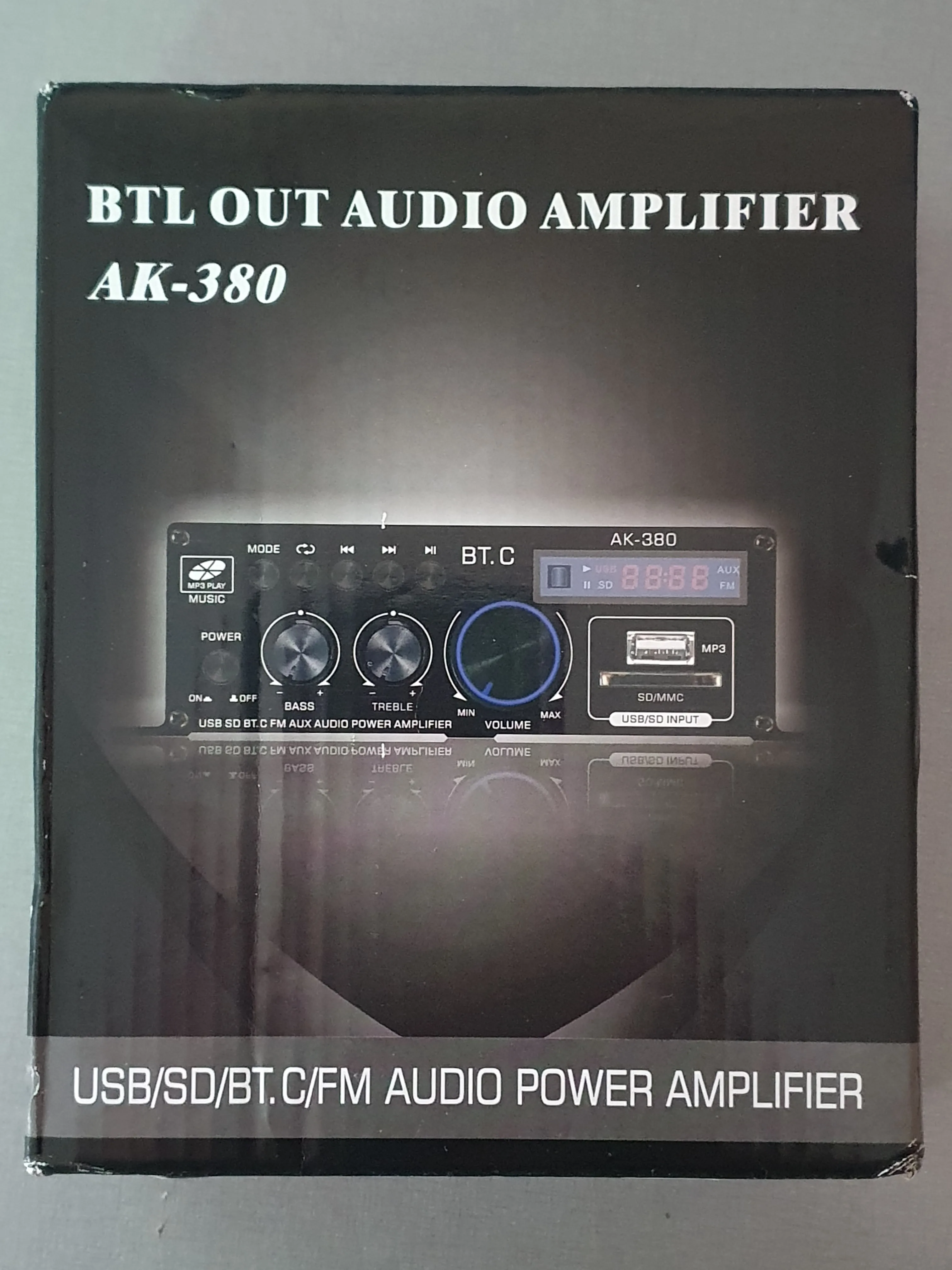 такой, как на фото. все функции работают, флешки читает, радио принимает. качество звука нормальное. колонки радиотехника с30 качает нормально...веги 25-ас-109-2 тоже. можно брать. кстати мой - ак370