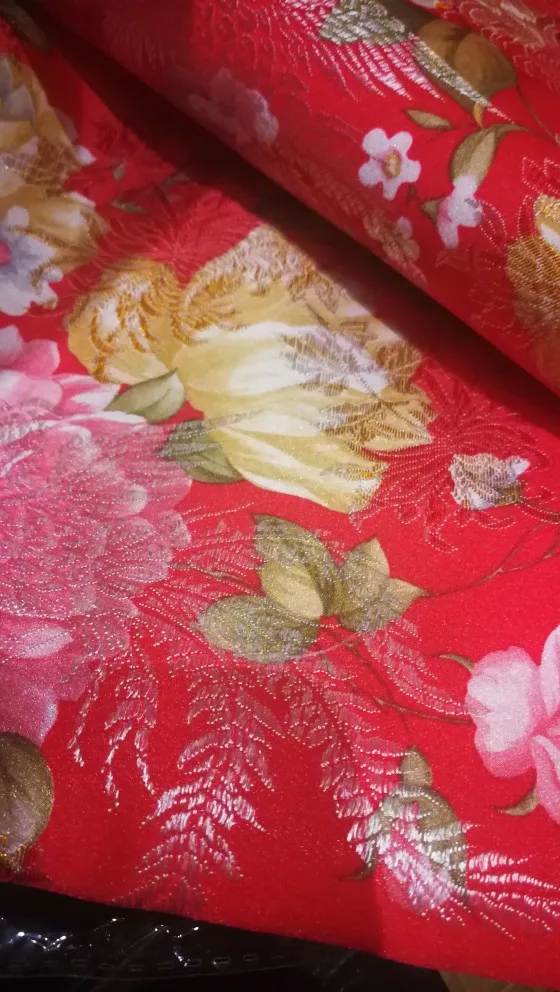 Узор парча жаккардовые ткани цветы, красный, фиолетовый цвет, для шитья Cheongsam кимоно материал для украшения одежды «сделай сам»