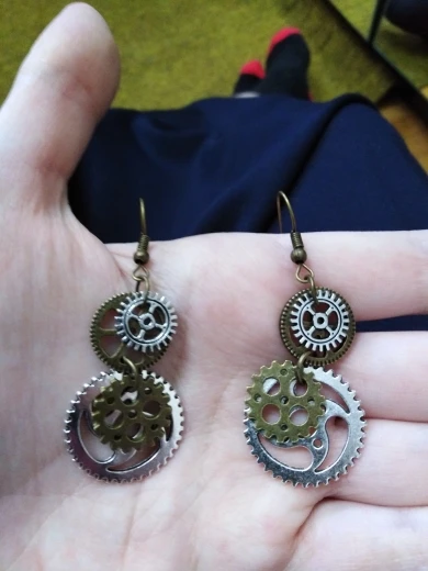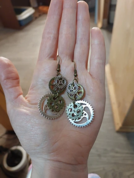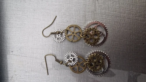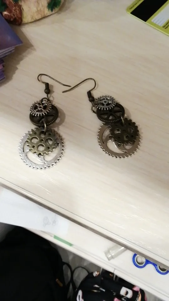 В комплексе 8seasons серьги в стиле «стимпанк» Шестерня античная бронза 60 мм (2 3/8 ") x 23 мм (7/8"),Post/провода Размеры: (21 калибр),1 пара Горячее предложе...