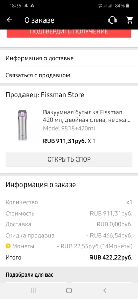 Термокружка понравилась, дошла где то за месяц до моск. области но тут наша почта накосячила с трэк номером, и так что не считая мелочей все норм.
