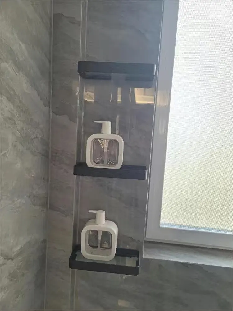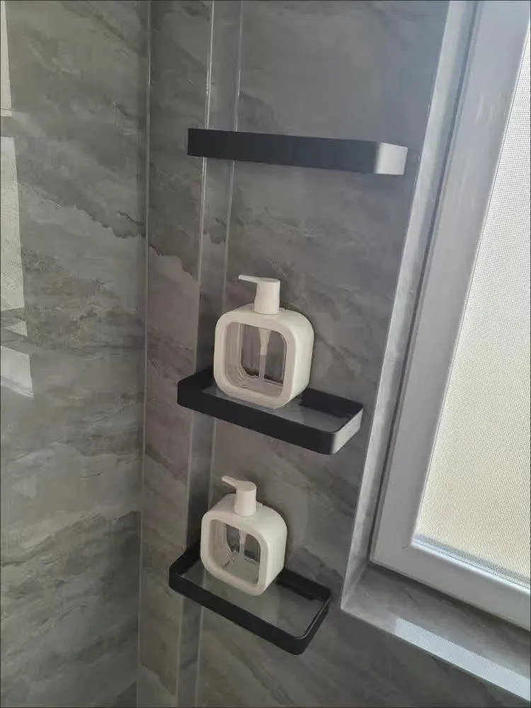 Ванная комната полка Алюминий квадратная душевая полка Стекло душевая полка черная отделка для хранения стойка для хранения корзины Ванная комната аксессуар